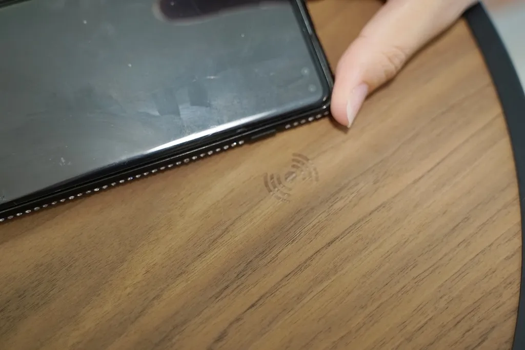 桌面上還有手機無線充電盤,只要把具有無線充電功能的手機放置在充電標誌上就可以立即無線充電